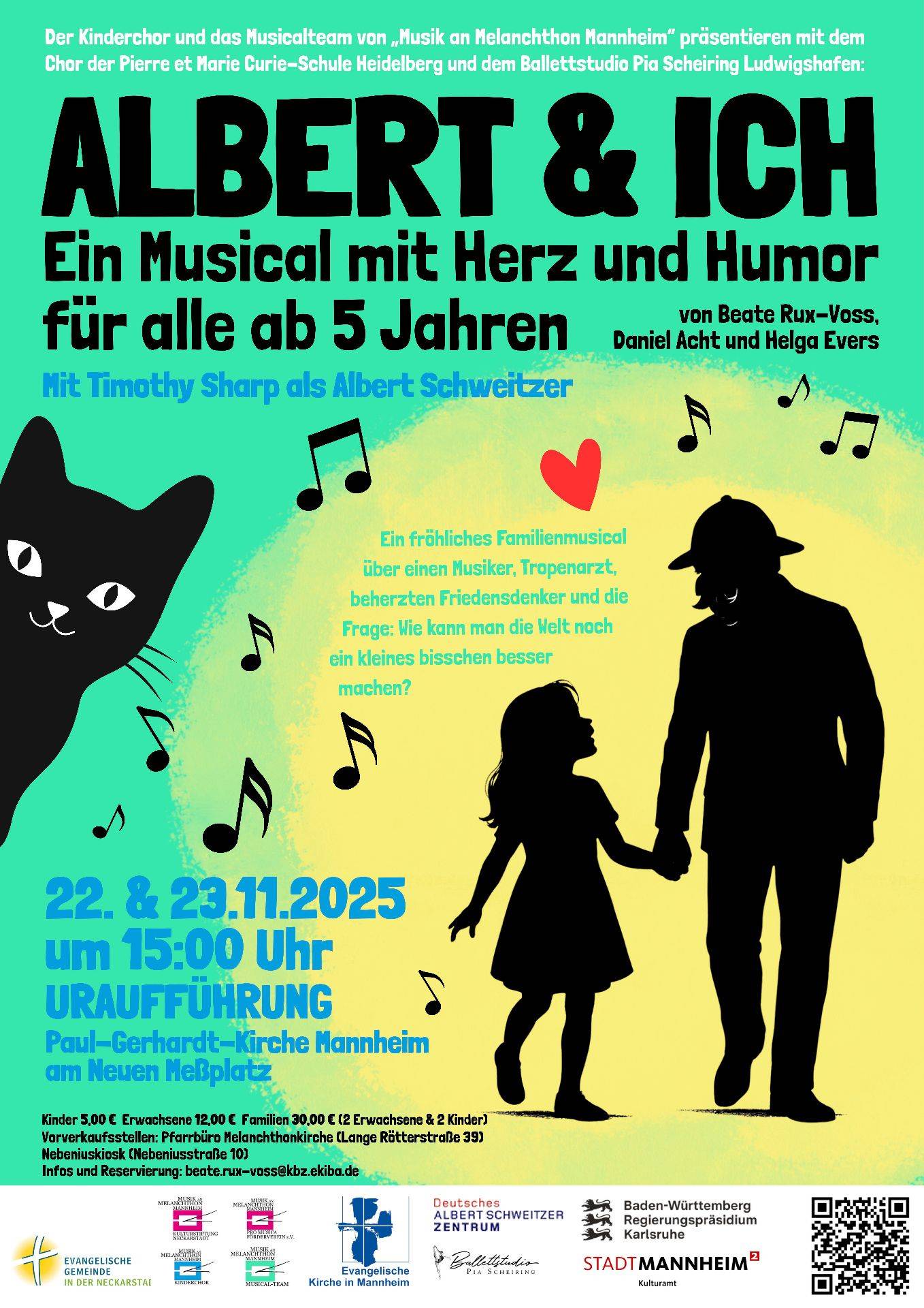 Im Albert-Schweitzer-Jahr 2025 möchten Sie gerne der jungen Generation Albert Schweitzers Leben und Ethik durch das eigens geschaffene, 90-minütige Familien-Musical „Albert & ich“ vermitteln. Mitreißende Songs sorgen für Ohrwürmer, tiefe Gefühle zum Nachdenken.